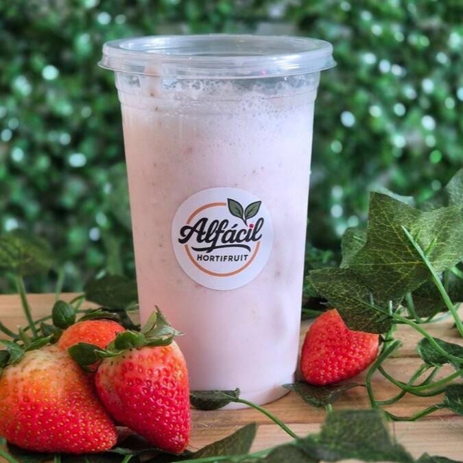 Smoothie de morango feito com frutas frescas, sabor suave e cremosidade irresistível.