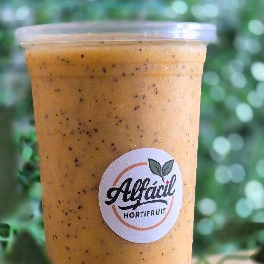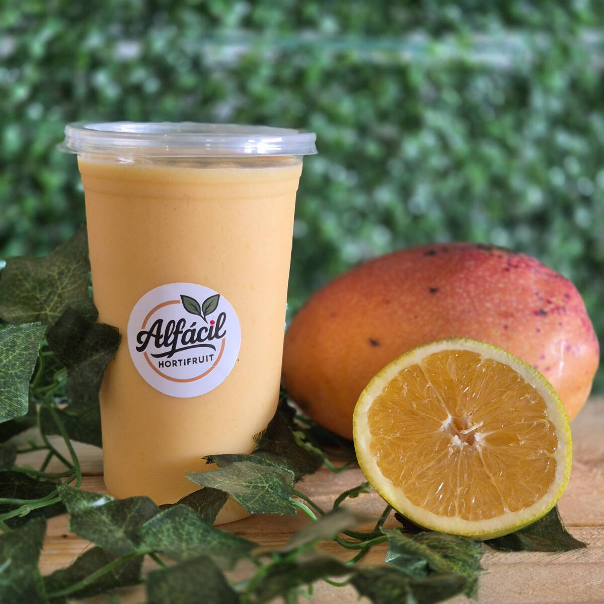 Smoothie de manga, maracujá e laranja: doce, cítrico e naturalmente refrescante. 300ml , caso queira maior escolher nas opções.