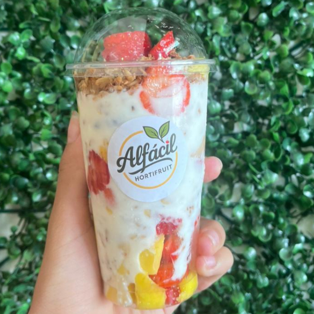 Aqui você monta tudo! Escolha seus toppings favoritos — granola, mel, iogurte, leite condensado, caldas e muito mais. Misture do seu jeito e deixe sua salada de frutas com a sua cara: do saudável ao mais doce, você decide. Fresquinha, gostosa e feita na hora! 300 ml, caso queira um tamanho maior, selecionar nas opções.