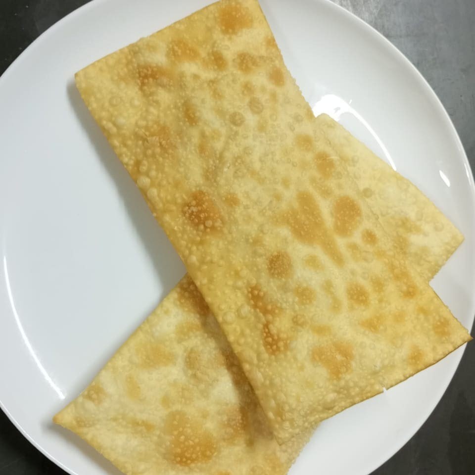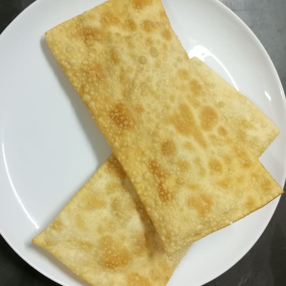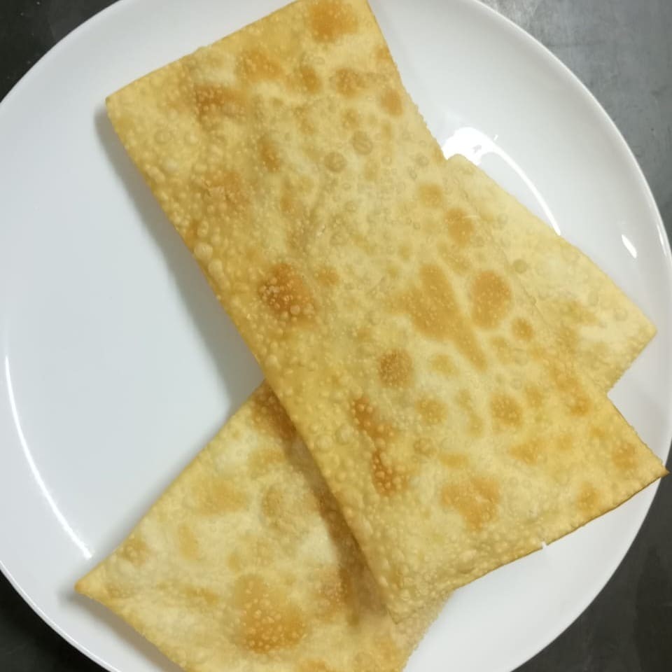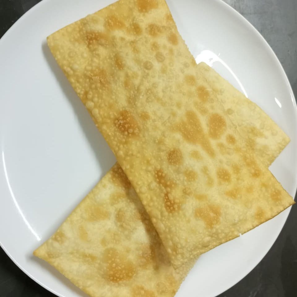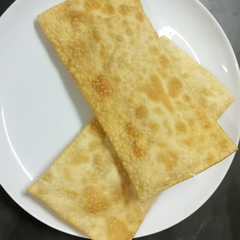 Pastel de Frango com queijo derretido e um frango desfiado uma delicia frito na hora .