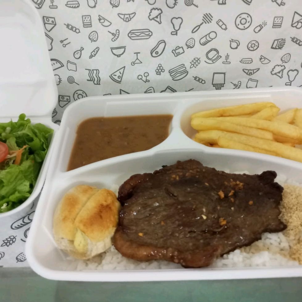 Executiva Media De Bife Acebolado Acompanha Arroz, Feijão ,Fritas E Salada Do Dia .