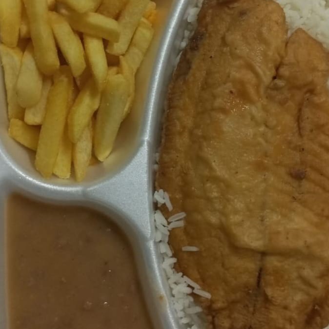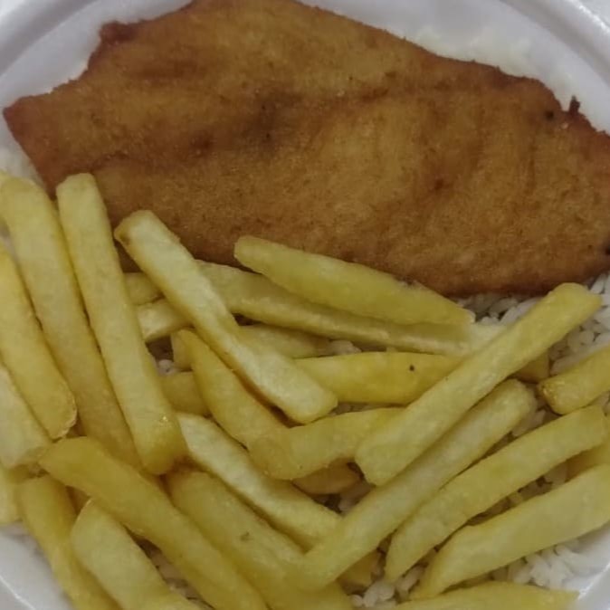 Executiva de file de tilapia empanada , acompanhada de arroz , feijão , fritas e salada do dia e legumes do dia serve uma pessoa