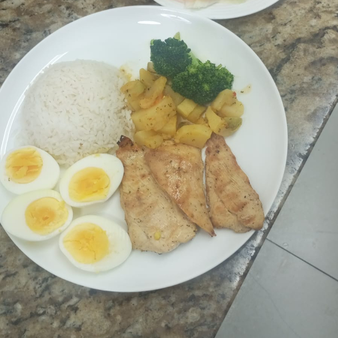Executiva Pequena 90 Gramas De Frango Grelhado + 1 Ovo Cozido+ Arroz + Legumes.