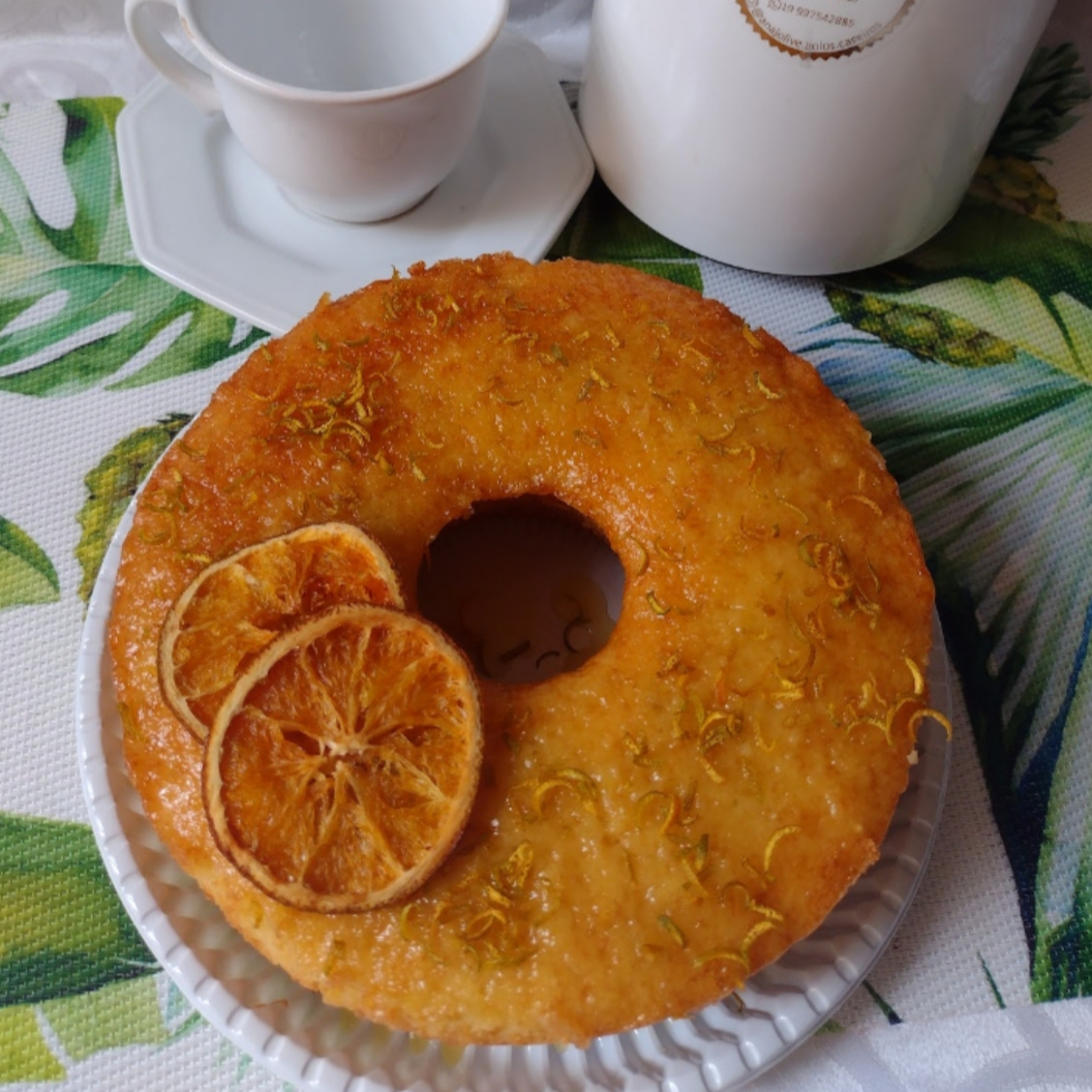 Bolo cítrico de laranja, leve e saborizado com a fruta fresca, bem molhadinho com suco da laranja adoçado. Perfeito para o café da tarde ou da manhã . ideal para o café da manhã ou da tarde. .