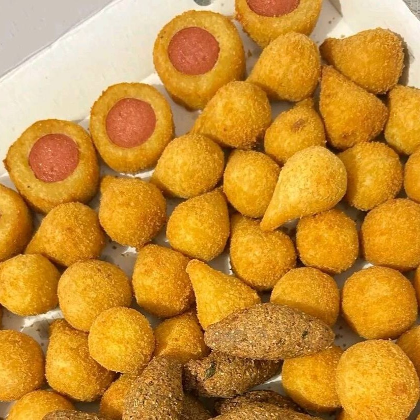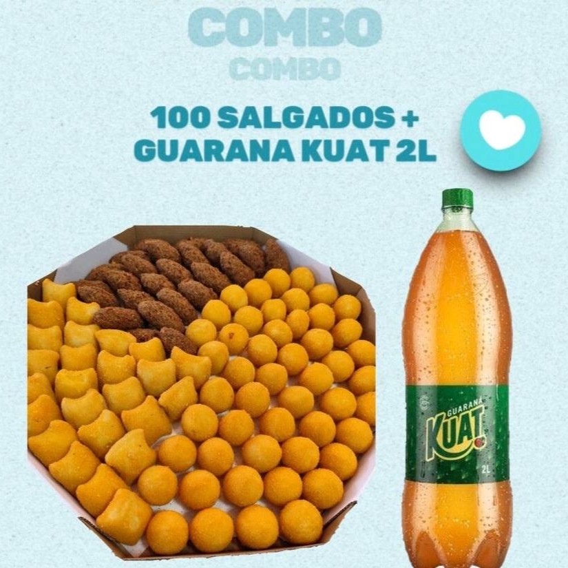 100 salgados mistos fritos na hora e 1 Guaraná Kuat 2l geladinho (salgados mistos: queijo,presunto e queijo,coxinha,kibe,croquete ,salsicha) Peça agora!!