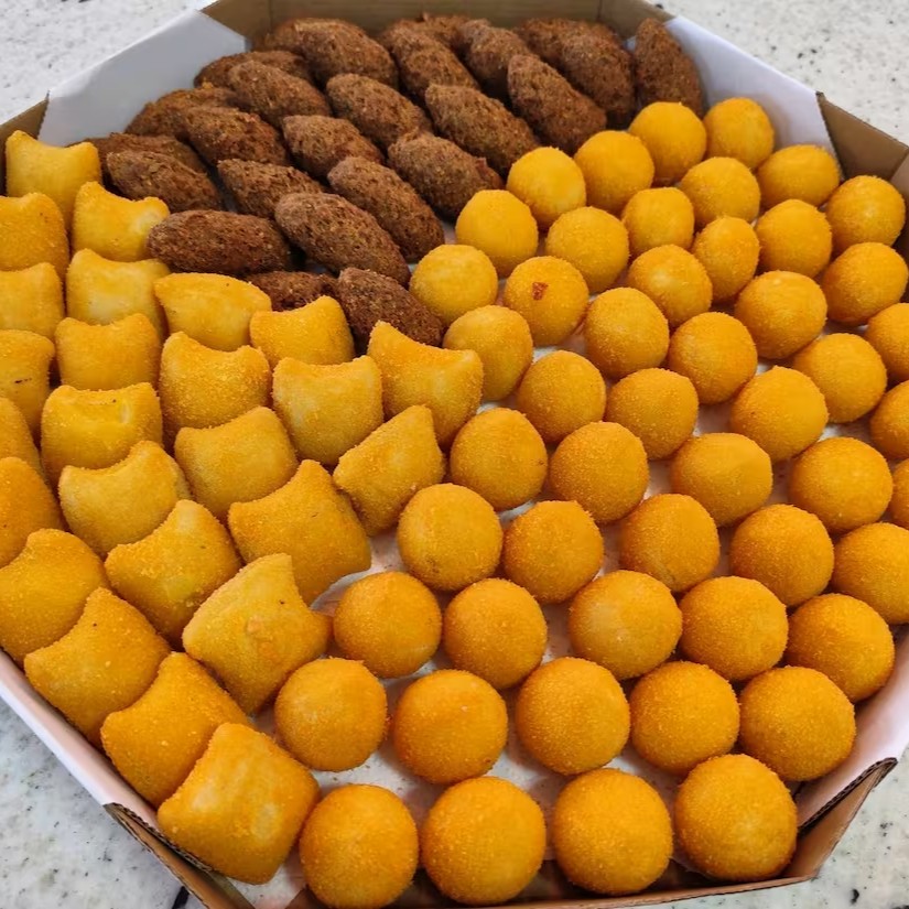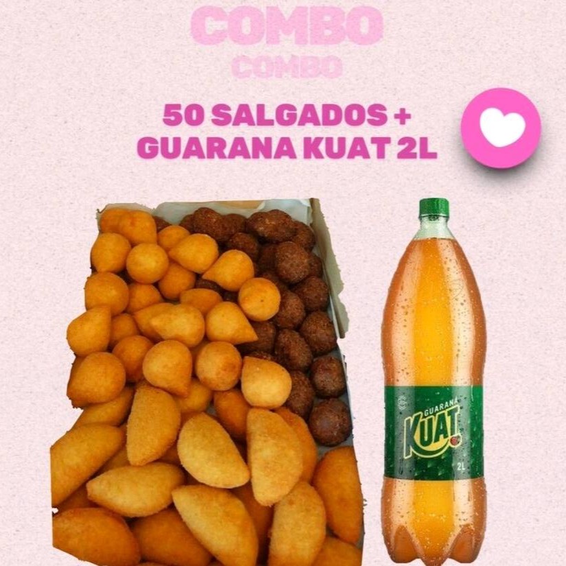 50 deliciosos salgados mistos e 1 Guaraná Kuat geladinho de 2l. (salgados mistos:queijo,presunto e queijo,coxinha,kibe,croquete ,salsicha) Peça já!!!