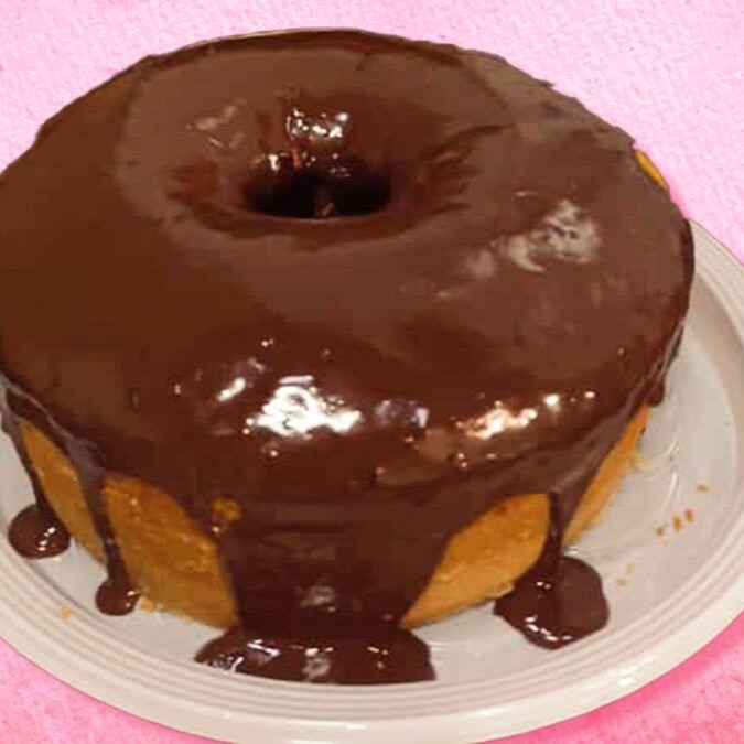 Saboroso bolo de churros caseiro, preparado com carinho e ingredientes selecionados, massa macia e cobertura deliciosa de doce de leite.