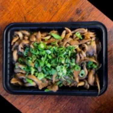 Porção de cogumelo tipo shimeji cozido na manteiga com cebolinha