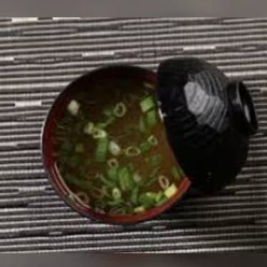Deliciosa sopa de missô. Finalizado com toques de cebolinha.