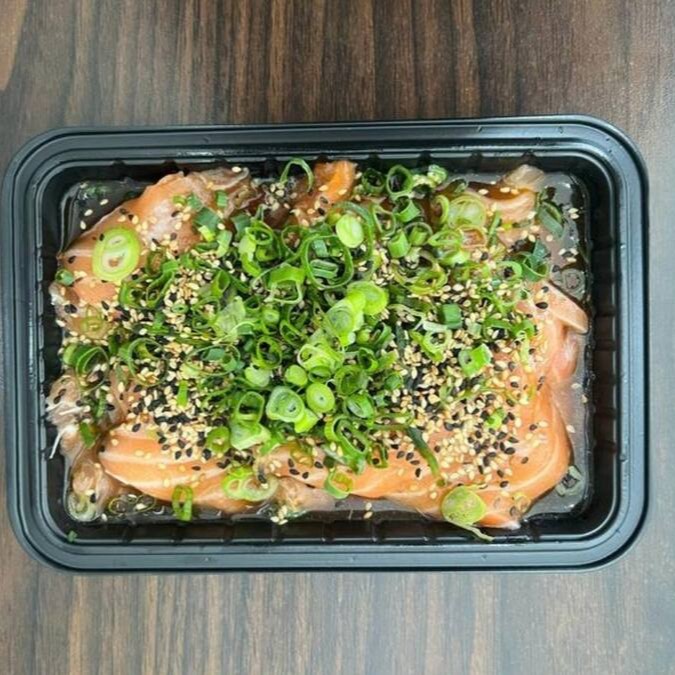 Fatias finas de peixe ao molho à base de shoyu e cebolinha