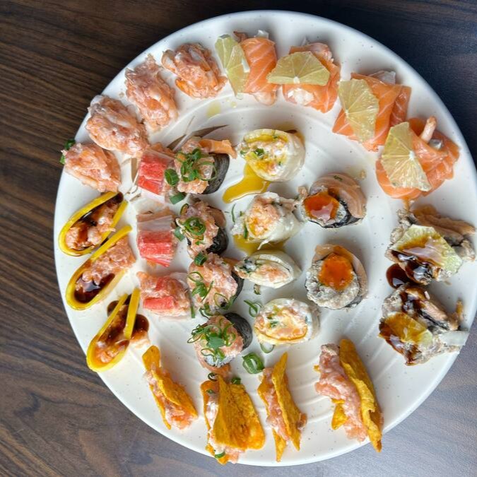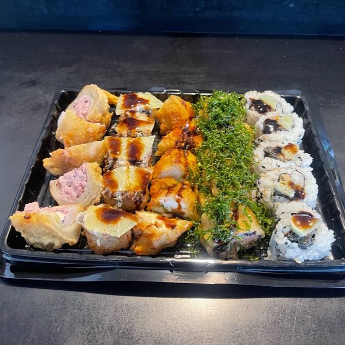 30 Sushis variados com a sugestão do chefe + 20 fatias de sashimi