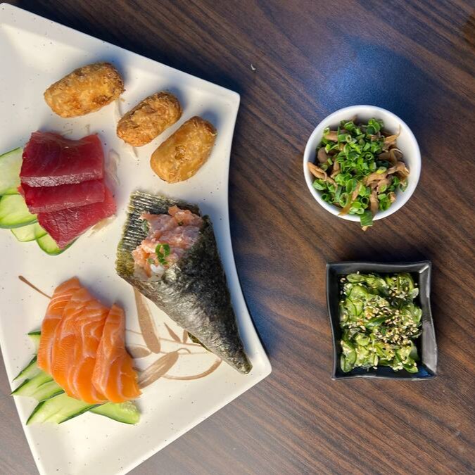1 Temaki + 6 sashimi + 1 porção de shimeji + 1 porção de sunomono