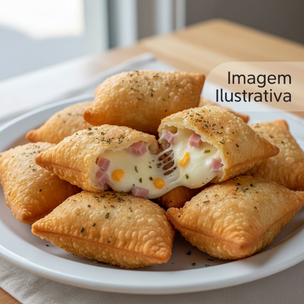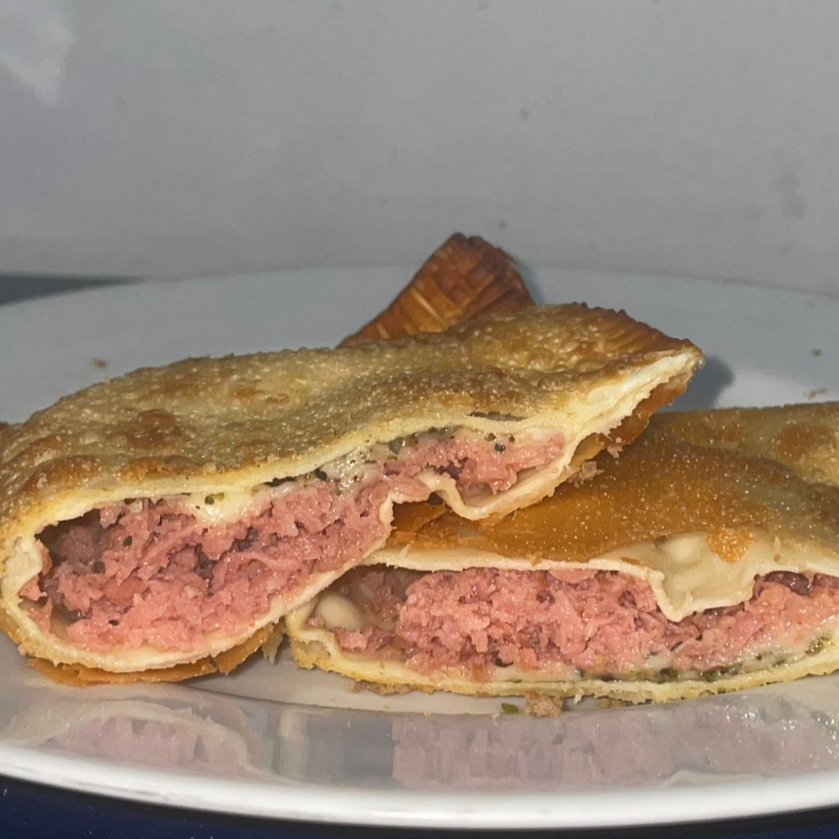 Recheio de queijo, presunto e orégano em um pastel crocante. Um clássico reinventado.