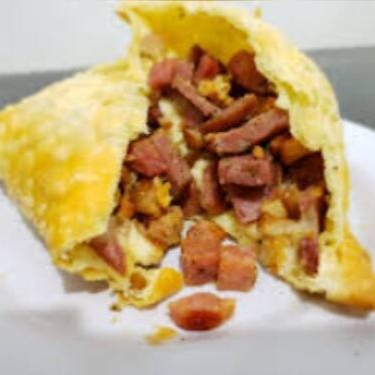 Massa de Farinha de Trigo, carne moída temperada, ovo e deliciosos temperos caseiros.