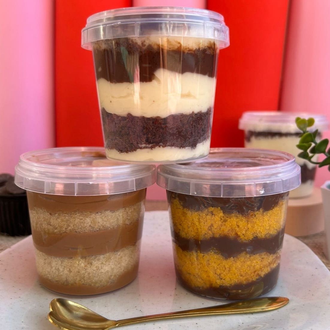 Na compra de 3 bolos no pote, o terceiro sai por apenas 12 reais! Quem não ama uma boa promoção, não é mesmo? Corre que essa promo está imperdível. Obs: escolher sabor através do chat.