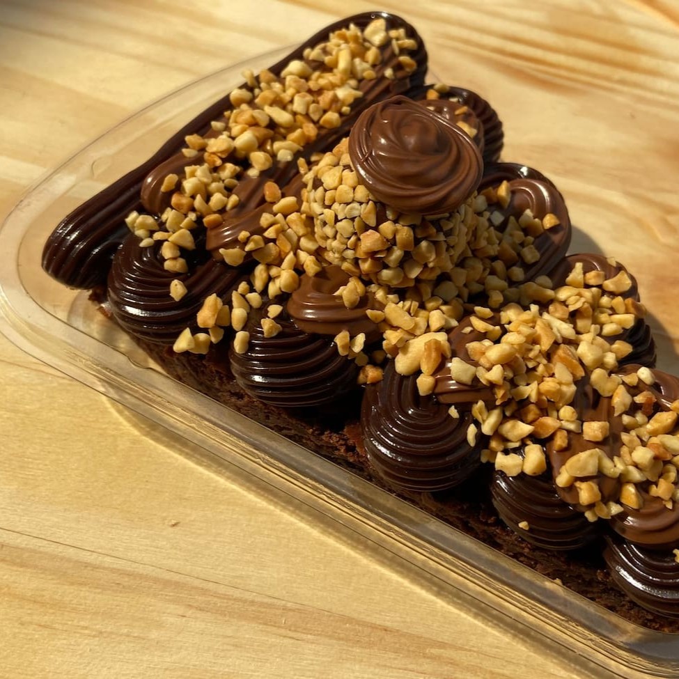 Essa é a combinação perfeita! Uma mordida e duvido você não se apaixonar pela nossa pizza brownie de Ferrero Rocher. Essa fatia traz a união perfeita do brownie bem molhadinho e crocante por fora, com uma camada generosa de brigadeiro, e finalizada com bastante Nutella e por fim, amendoim triturado. Peso aproximado 275 gramas.