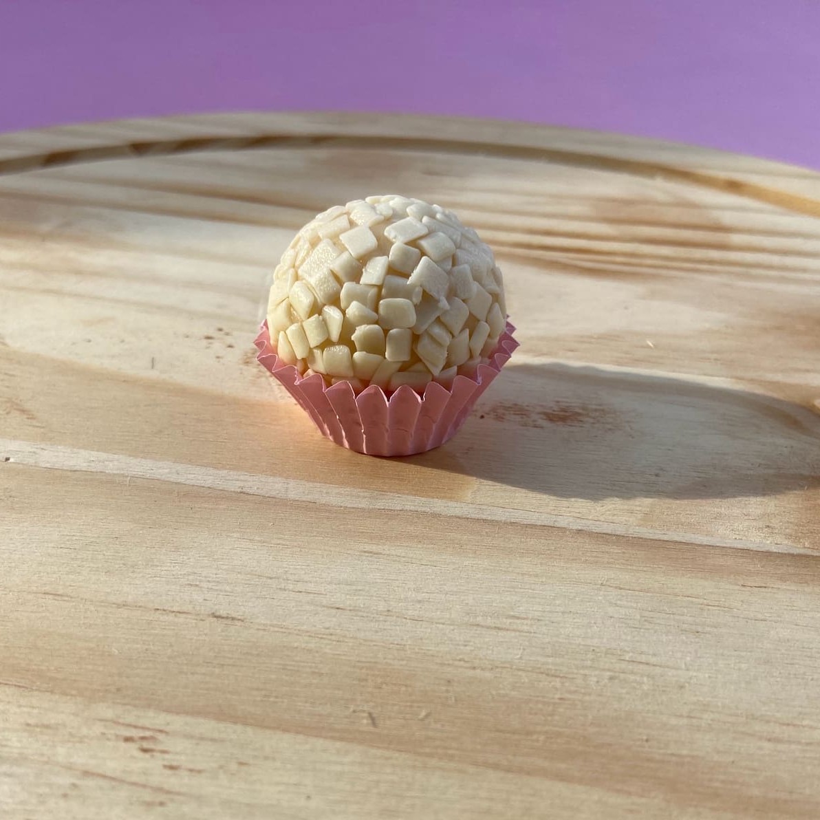 Nosso delicioso brigadeiro branco, produzido com chocolate nobre, e finalizado com confeito de chocolate branco. Peso aproximado 21 gramas.