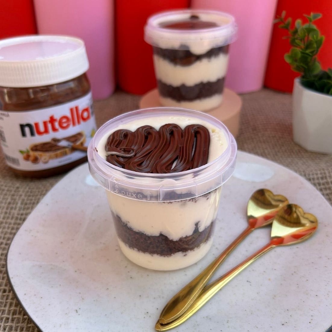 Uma combinação clássica e amada por todos! Esse é o nosso queridinho e campeão de vendas! E não é para menos! Com recheios coringas da confeitaria que se casam muito bem, esse é o nosso bolo no pote de Ninho com Nutella, esse sabor que é uma verdadeira explosão e que encanta a cada colherada. Com camadas bem fofinhas da massa de chocolate e no recheio um sensacional e suave creme de Ninho com bastante Nutella do jeitinho que agente ama! Nosso pote é o de 220 ml e pesando aproximadamente 170 gramas.
