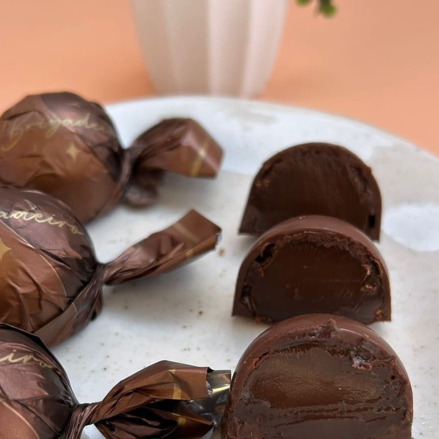 Nosso delicioso brigadeiro gourmet de chocolate meio amargo! Uma ótima opção pra quem busca equilíbrio no sabor, pois na massa usamos cacau em pó 50% e também chocolate meio amargo, e finalizado com granulado 70% amargo, trazendo assim o equilíbrio perfeito. Peso aproximado 23 gramas.