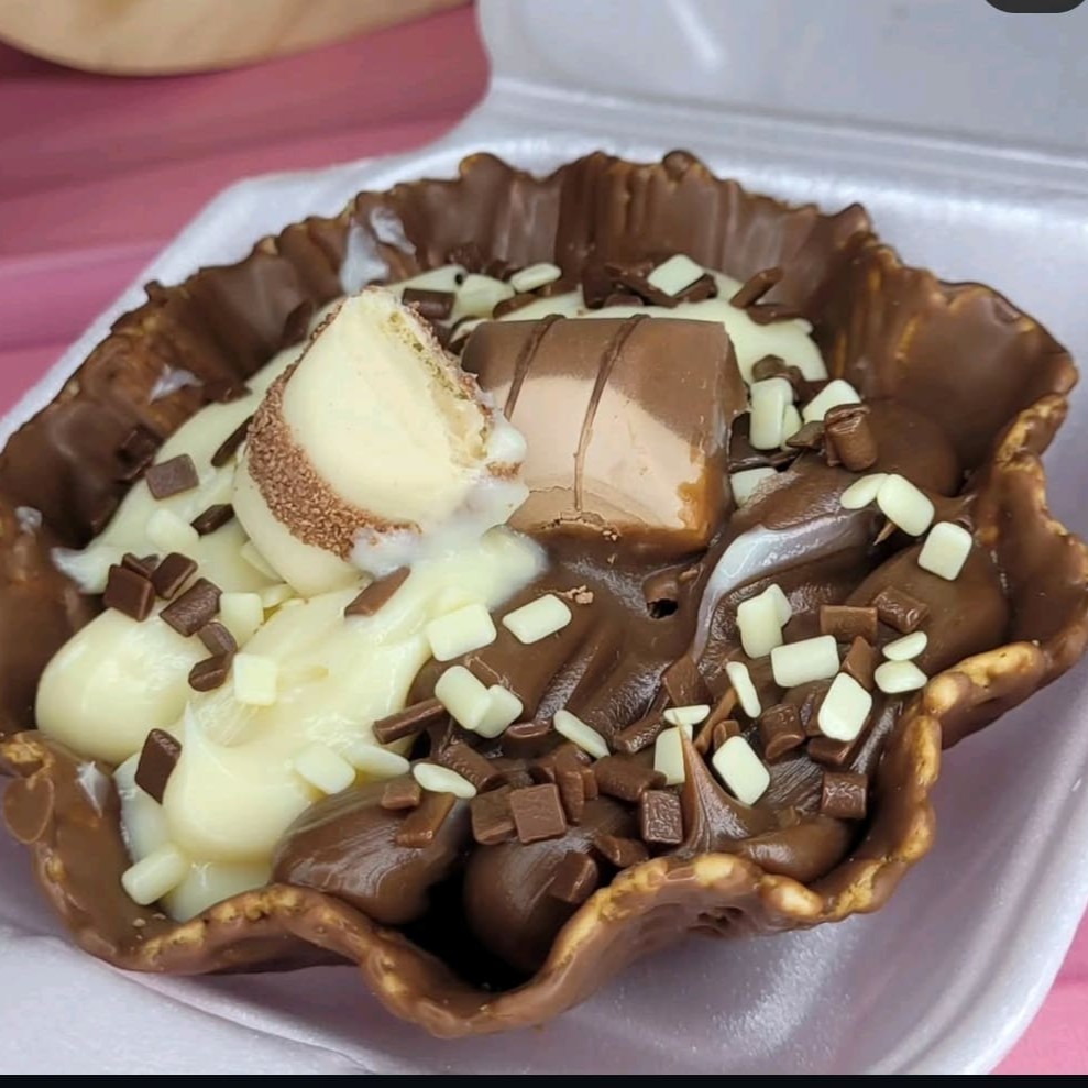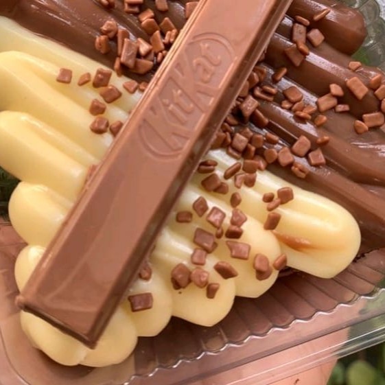 Creme de ninho com pedaços brownie creme de chocolate. Finalizada com chocolate kinder