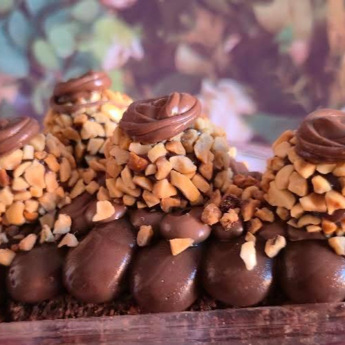 Massa chocolate creme de chocolate avelã . Amendoim e castanhas caramelizada