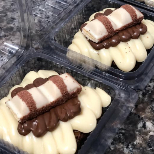 1 fatia generosa de brownie com um delicioso creme de ninho com avela e kinder Bueno