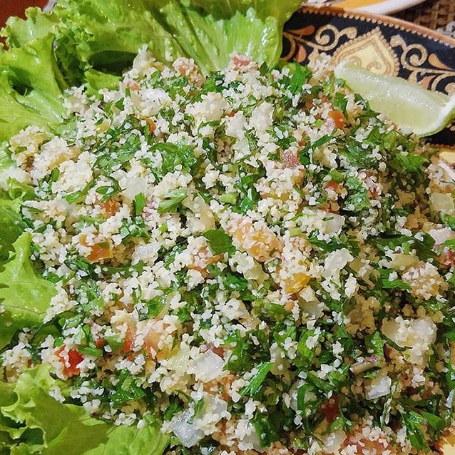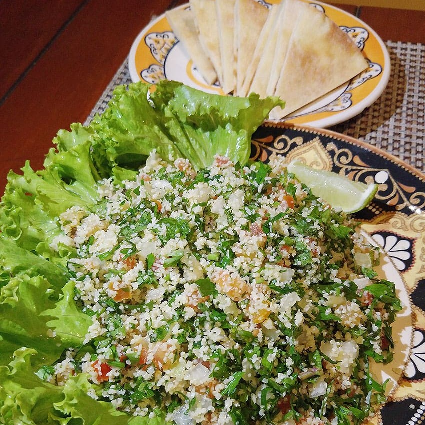 Trigo libanês, tomate, cebola, limão, salsa e hortelã (Acompanha um pão sírio)