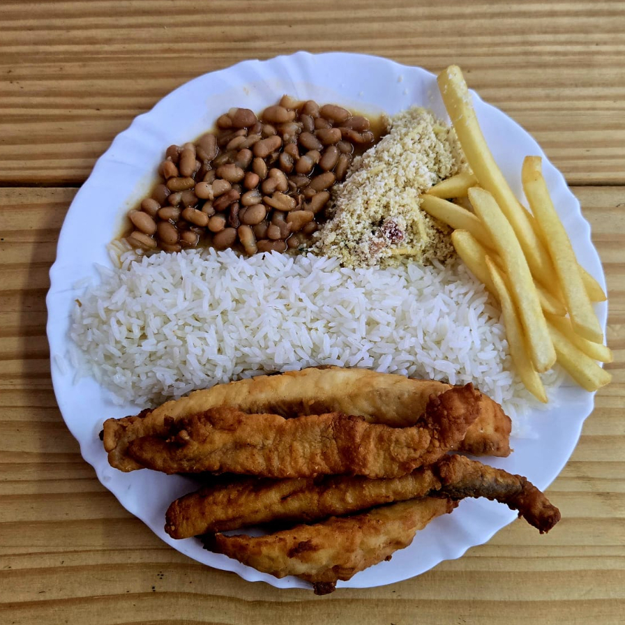 Deliciso filé de tilápia, arroz branco, feijão fresquinho e batata frita! O prato mais famoso da casa . Acompanha Coca-Cola 350ml.