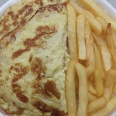 a Saboroso Omelete com Queijo emilanesa, e também Batata Frita.