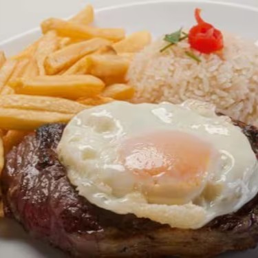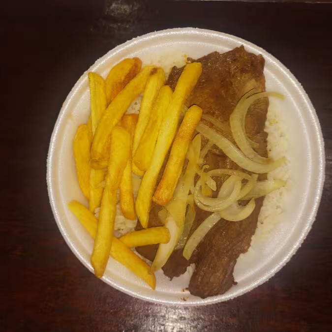 Arroz , Feijão , Bife acebolado , Batata frita.