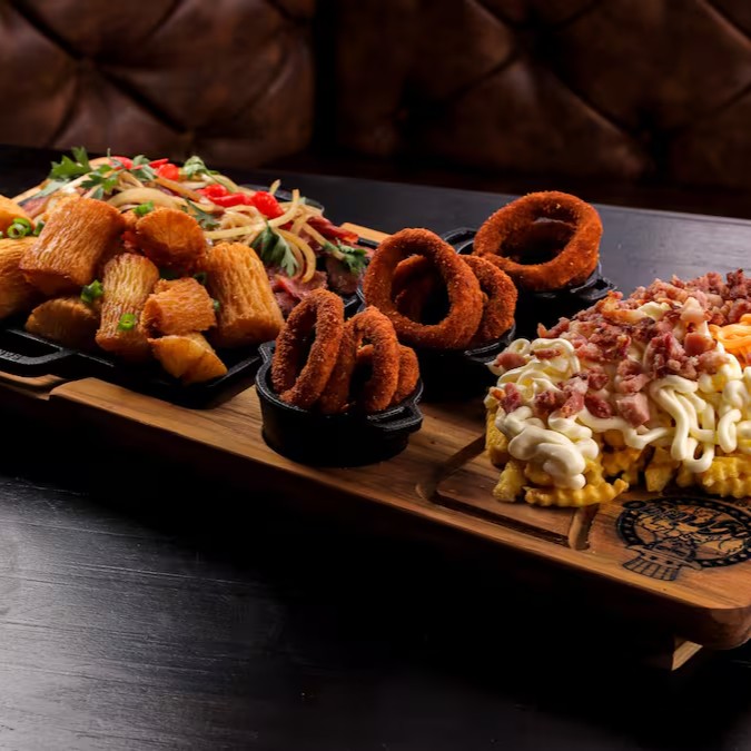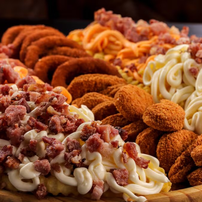 Delicie-se com as nossas '2 Fritas Turbinadas': um total de 1kg de batatas crocantes e douradas, generosamente cobertas com o cremoso cheddar e o autêntico Catupiry, finalizadas com a irresistível textura do bacon crocante. Acompanha ainda 400g de nuggets crocantes e suculentos, ideal para compartilhar com os amigos. E para fechar com chave de ouro, 20 unidades de anel de cebola, perfeitamente empanados e fritos até atingirem a perfeição dourada. Uma das 'Porções mais Pedidas' em nosso menu!