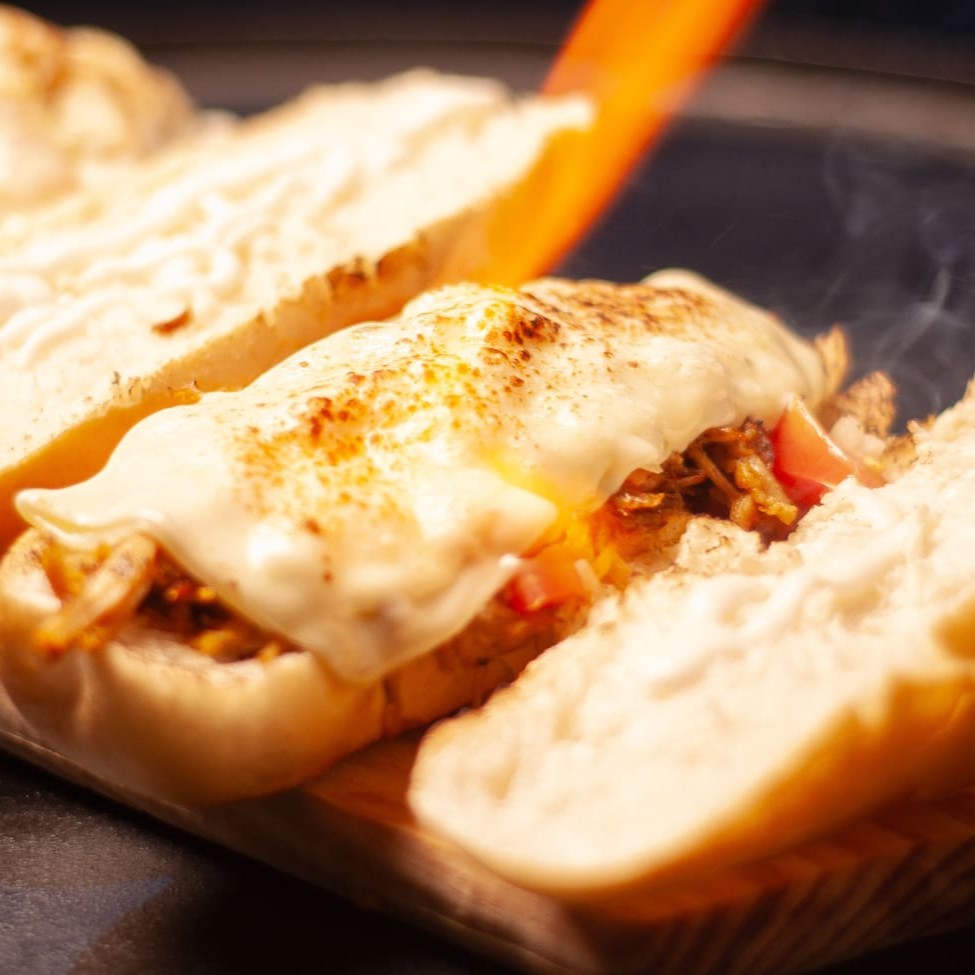 Carne desfiada, temperada e suculenta. Lanchinho perfeito para pestiscar! Acompanha vinagrete, mussarela e molho da casa. Rúcula pode ser um diferencial para agregar ainda mais sabor, consulte disponibilidade.
