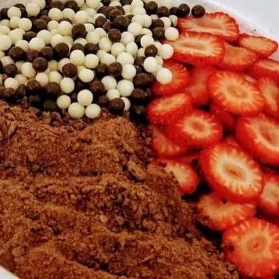 Açaí, Morango, Leite em pó, Disquete Chocoboll, Brigadeiro.