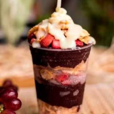 Açai Natural + morango+ + creme de avelã e leite em pó. Observação, não trocamos produtos da promoção, copo é montado c... (Ver mais).