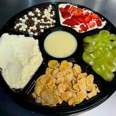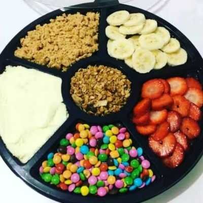 Açaí Natural Na Roleta (sucrilhos, Leite Em Pó, Chocobol, Uva, Morango E Leite Condensado)