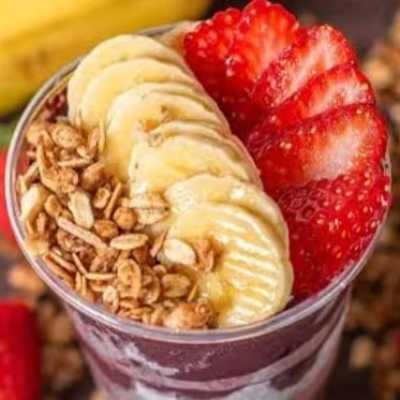Açaí Natural Na Tigela (banana, Morango, Granola, Leite Em Pó E Leite Condensado)