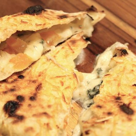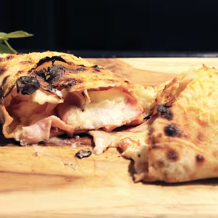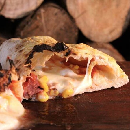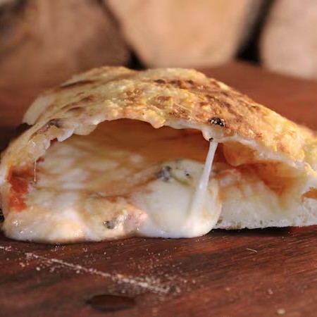 Recheado com mozzarela fior de latte, damasco picado e gorgonzola. Todos os nossos Calzones levam queijo parmesão ralado por cima