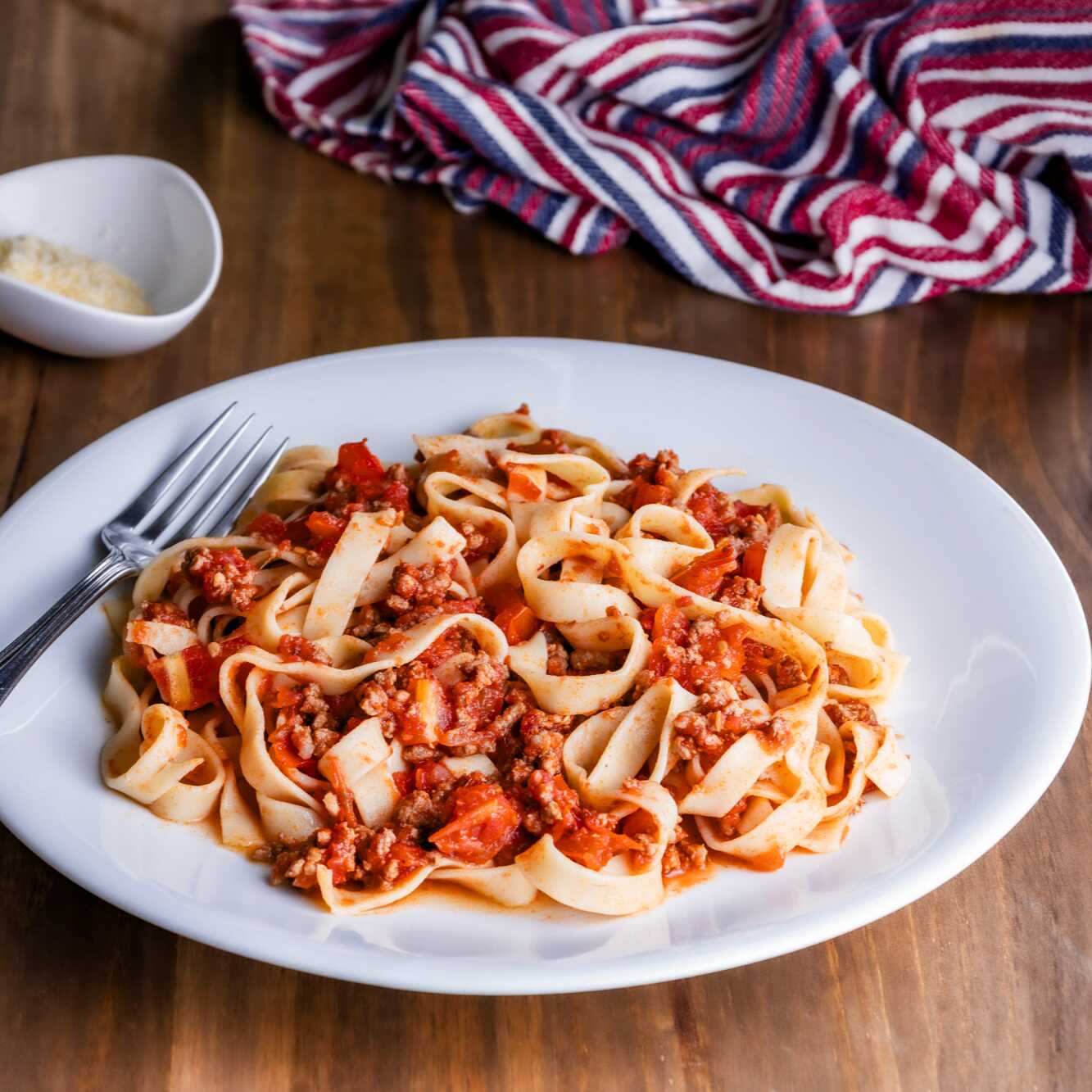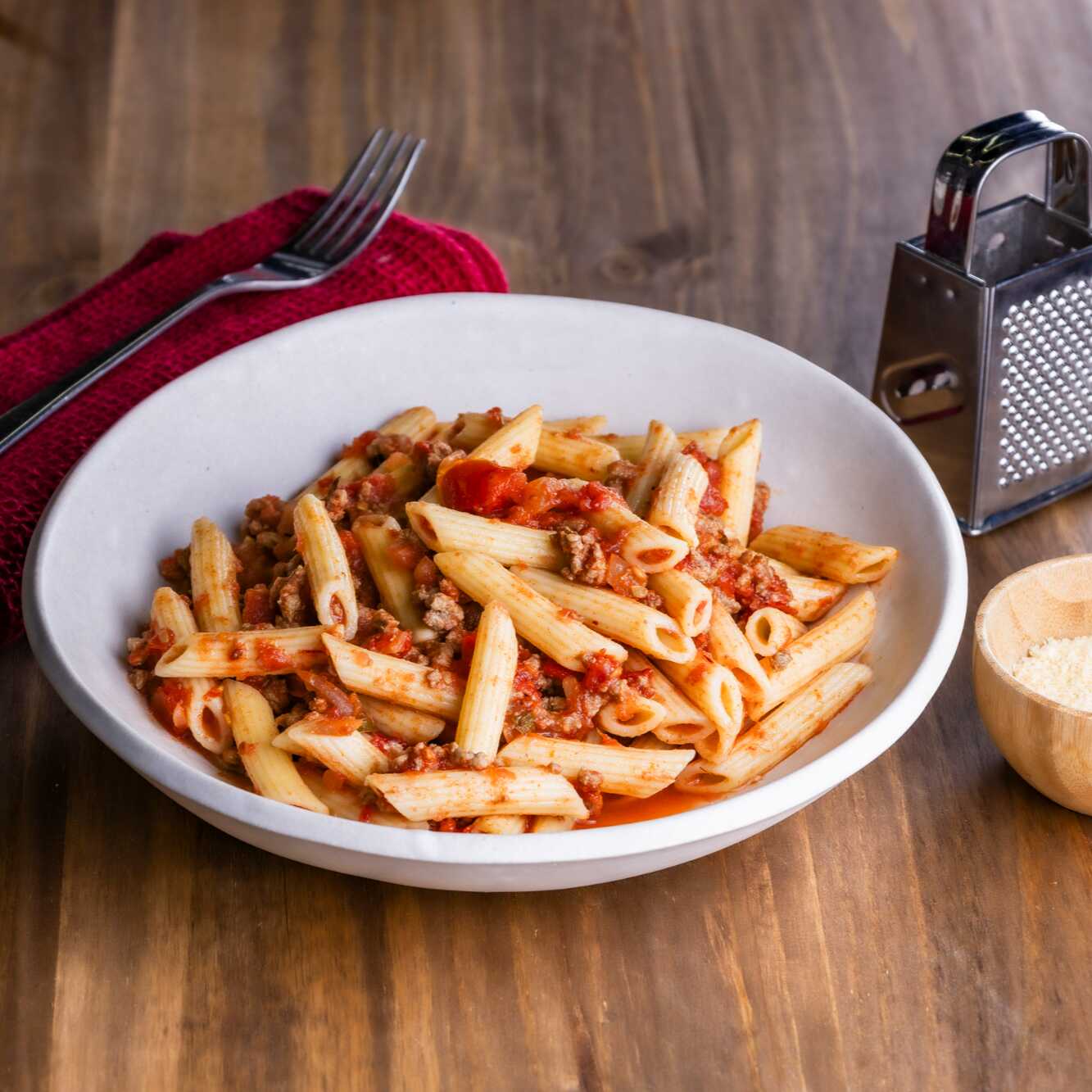 Uma receita clássica da Nonna com pedaços de tomate, carne moída, temperos selecionados.