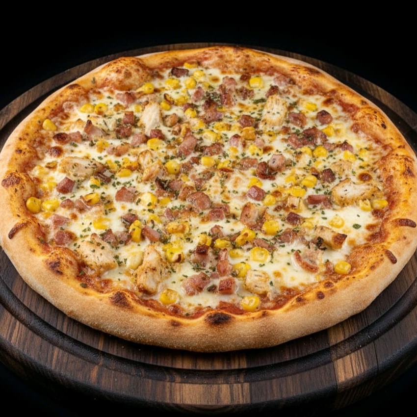 Muito queijo derretido, presunto ralado, milho, ervilha e cebola levemente dourada. Formando um sabor clássico e bem equilibrado. Completa saborosa e sempre uma ótima escolha.