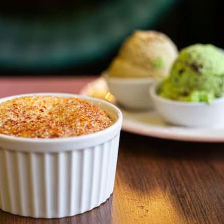 Cocada maçaricada com aquela superfície crocante que todo mundo ama, acompanha por 2 sabores de gelato artesanal à sua escolha... Você precisa provar essa delícia!