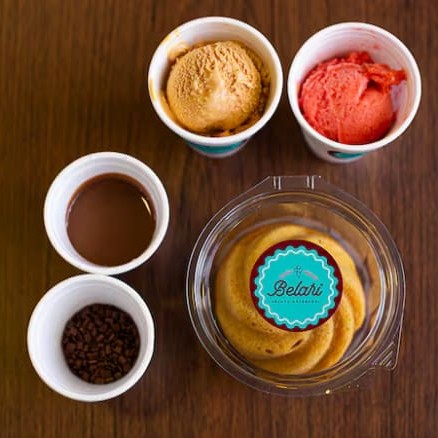 Desfrute do nosso irresistível bolo de cenoura caseirinho da Belari, acompanhado por dois sabores de gelato à sua escolha e para tornar a experiência ainda mais especial enviamos uma deliciosa calda de brigadeiro Belari e granulado de chocolate belga.
