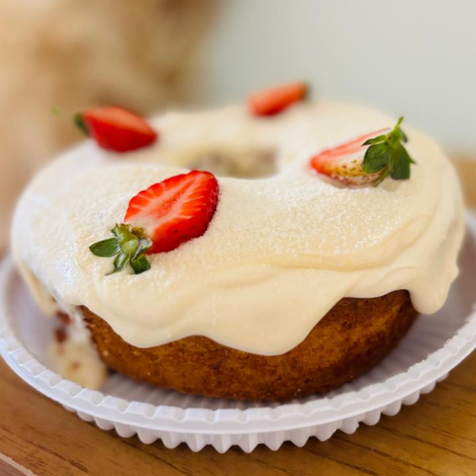 Massa branca com cobertura de ninho e finalizado com morangos 🍓!