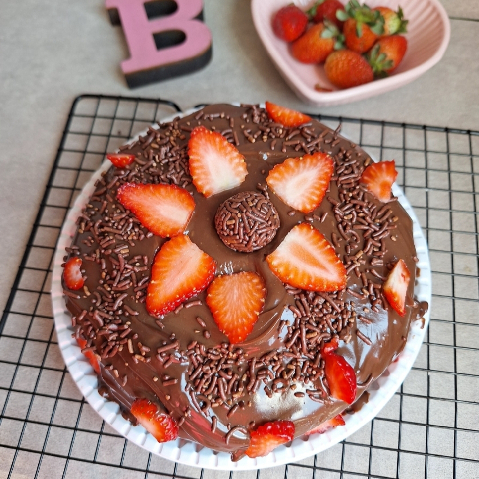 Nossa deliciosa opção de bolo com massa de chocolate e cobertura de brigadeiro gourmet e finalizado com morangos !