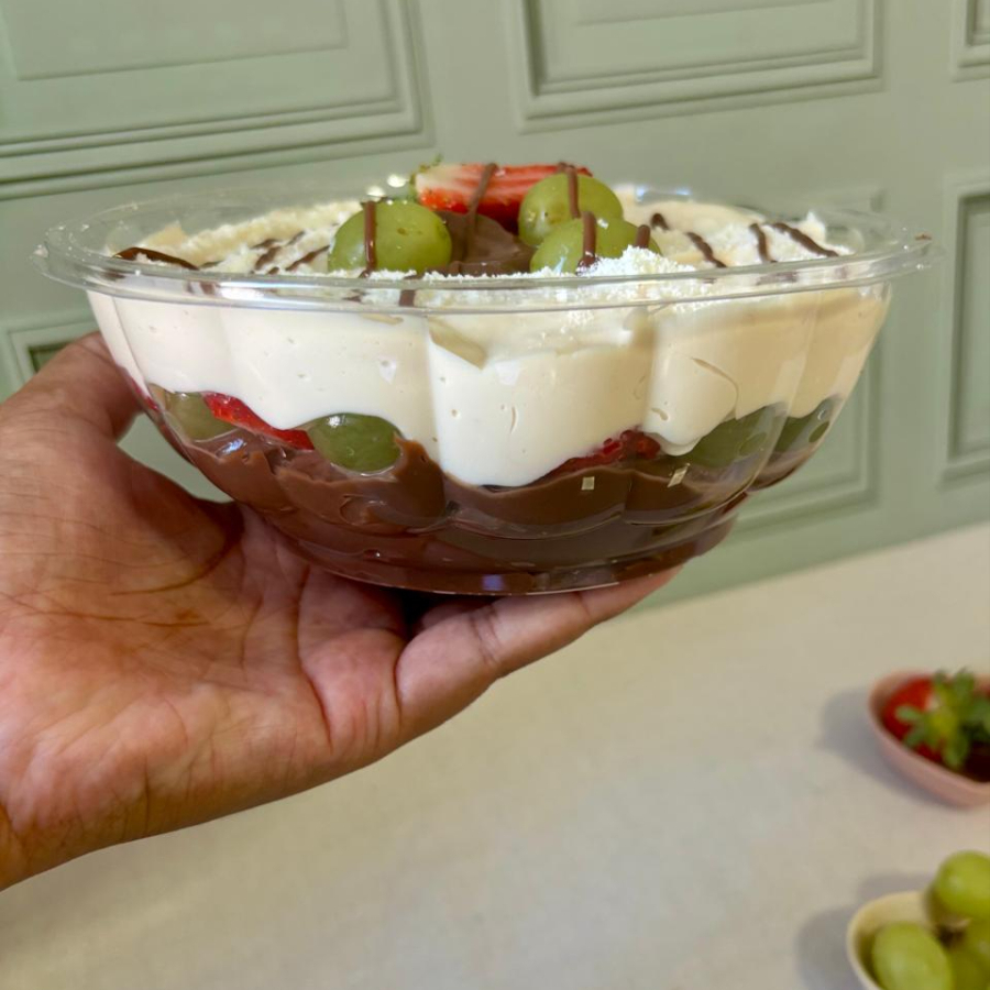 Uvas verdes ou morango ,brigadeiro gourmet da bella e creme de Ninho em 500 g de muita delícia pra dividir !