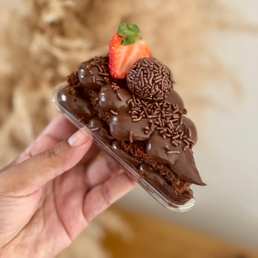 Deliciosa massa chocolate 50% intercalado com nosso delicioso brigadeiro e finalizado com 1 brigadeiro e morango !