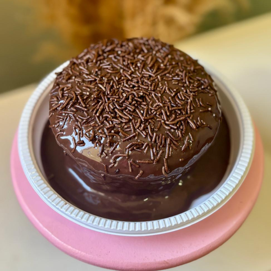 Massa fofinha 50% cacau com uma avalanche de brigadeiro gourmet artesanal. Serve até 4 fatias generosas. Aproveite, é só hoje!.