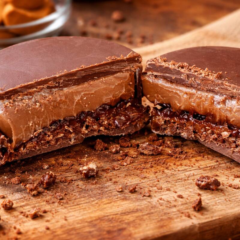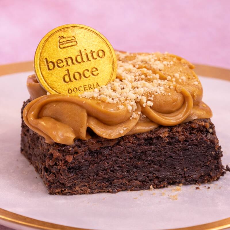 Delicioso brownie macio e molhadinho por dentro, com uma casquinha crocante e uma fantástica cobertura do nosso melhor doce de leite