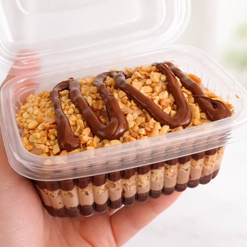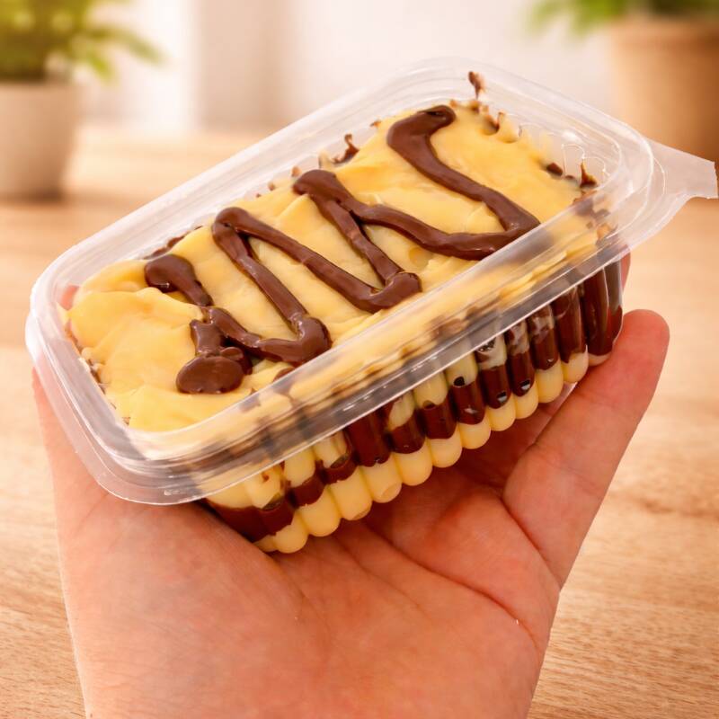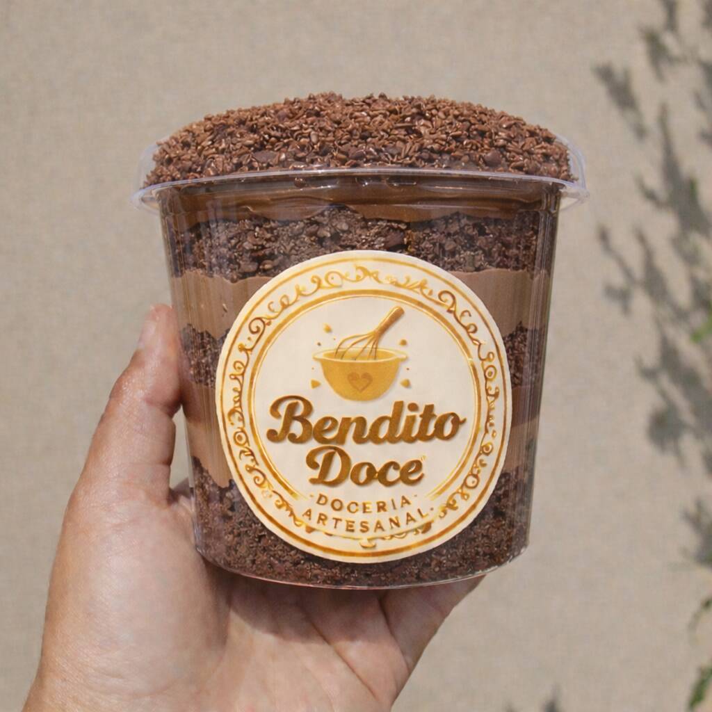 Deliciosa camada de bolo molhadinho, com camadas intercaladas de recheio de brigadeiro de ovomaltine .Pote de 250ml