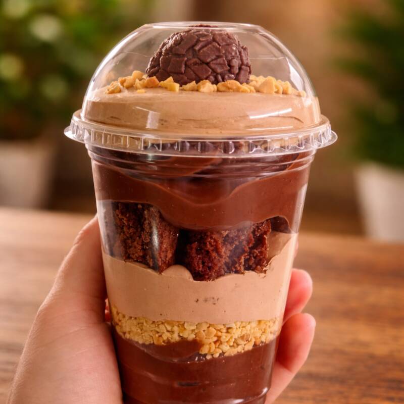 Copo de 300ml com camadas de brigadeiro de café, um creme de café suave e pedacinhos de brownie. Que combinação perfeita !!