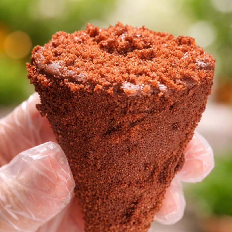 Cascão de sorvete banhado no chocolate, com camadas de recheio de brigadeiro tradicional cremoso e beijinho. Para delivery todos os cones vão fechados com chocolate e pode variar na decoração